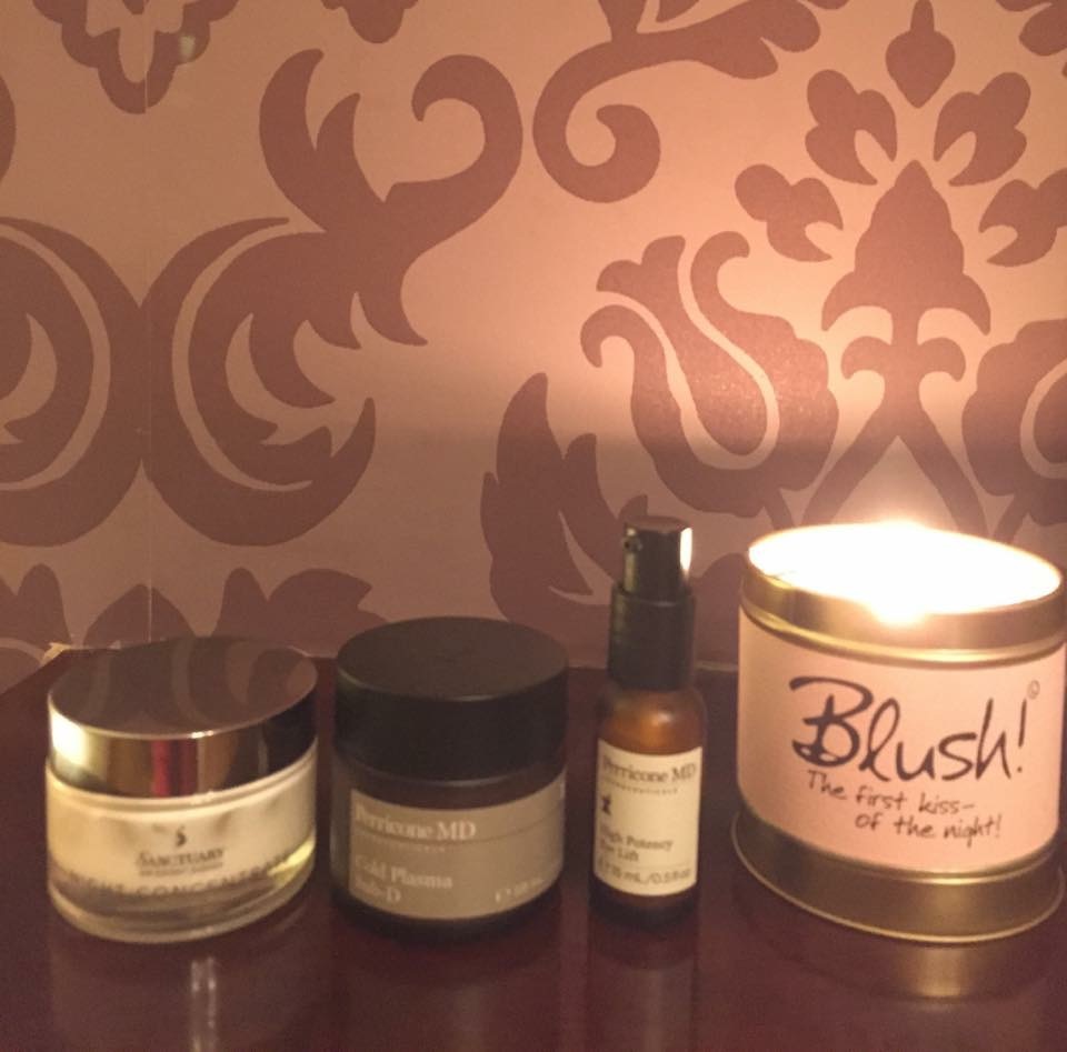 I then use my eye cream, a size of the grain of rice on the orbital bone. I’m using Perricone MD high potency eye lift, followed by Perricone cold plasma Sub-d on my neck and décolletage; this neck cream is a miracle in a jar! My necklace lines have lessened in 2 weeks. It’s expensive and I bought it on Qvcuk as a TSV when it’s finished I may actually cry! I then moisturise my whole face with Sanctuary night concentrate as it’s a lighter in texture than the day cream strangely.