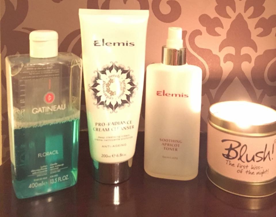 Mornings I like to use Elemis Pro Radiance Cleanser which dissolves makeup and treats the skin,(primark/penny’s do fab face clothes which gently exfoliate too, and cost penny’s) Gatineau Floracil eye makeup remover as it’s gentle for contact lenses wearers’, finishing with Elemis Apricot toner. Twice a week I also use an exfoliating mask, your moisturiser will only work 50% if you don’t slough off the dead skin cells, Elemis papaya enzyme mask