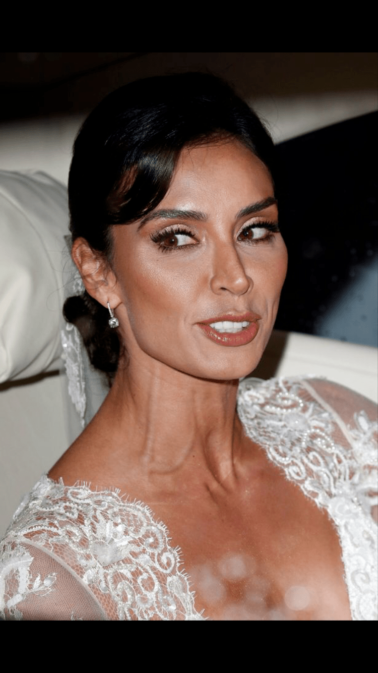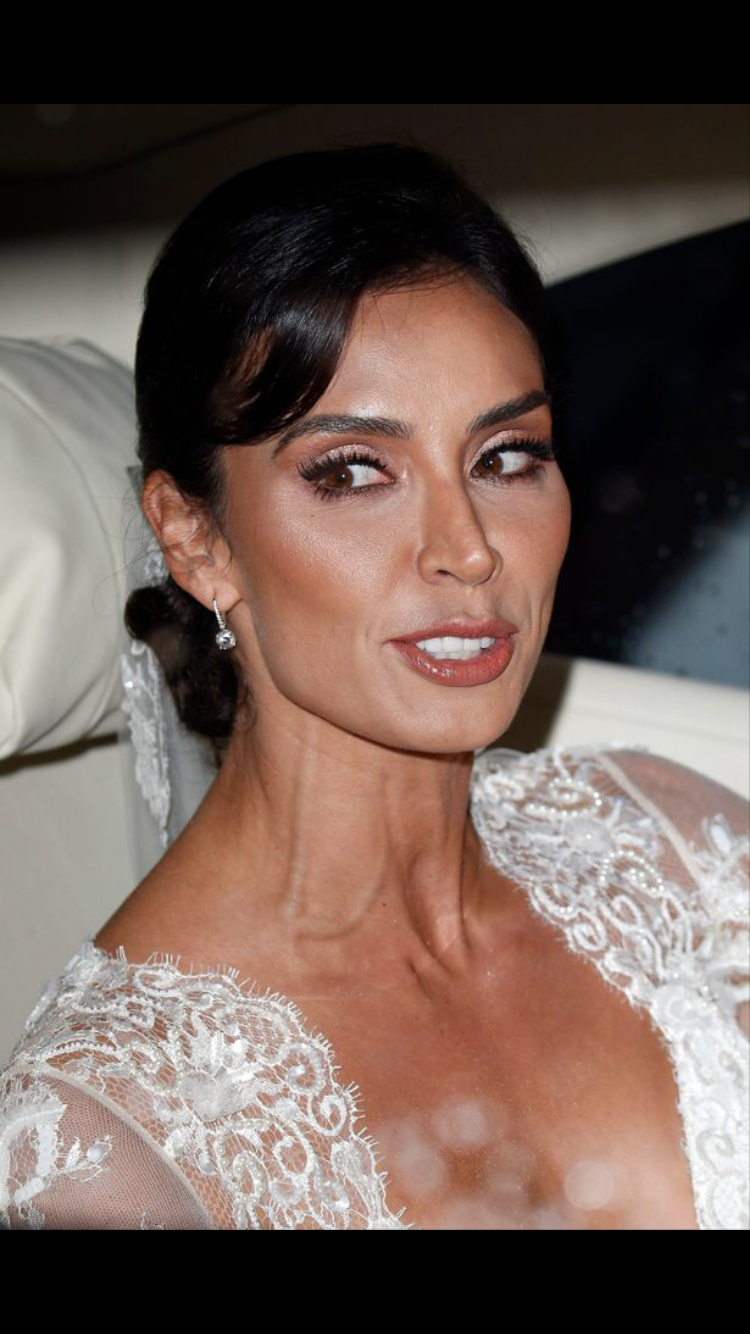 Let’s take a moment to admire the makeup, the neutral eye, which will never date. The lashes and coral lips where perfect against Christine’s olive complexion.
