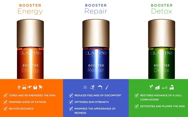 There are 3 Clarins Boosters, Energy, Repair, Detox.