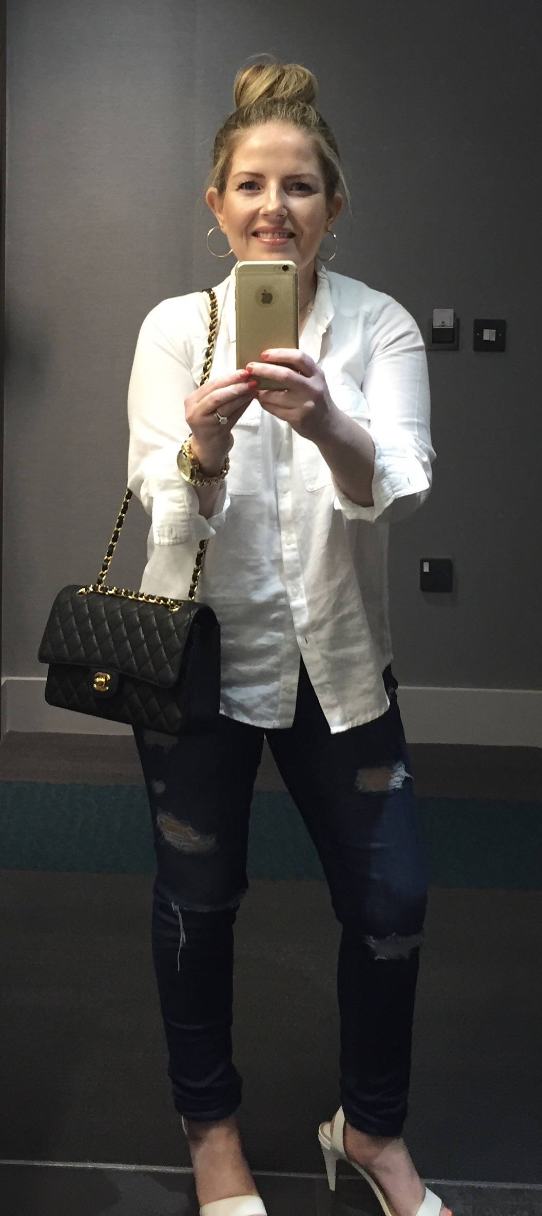 Chanel Medium Flap caviar leather. Topshop White Shirt. Topshop Jeans. Shoes from Spain.